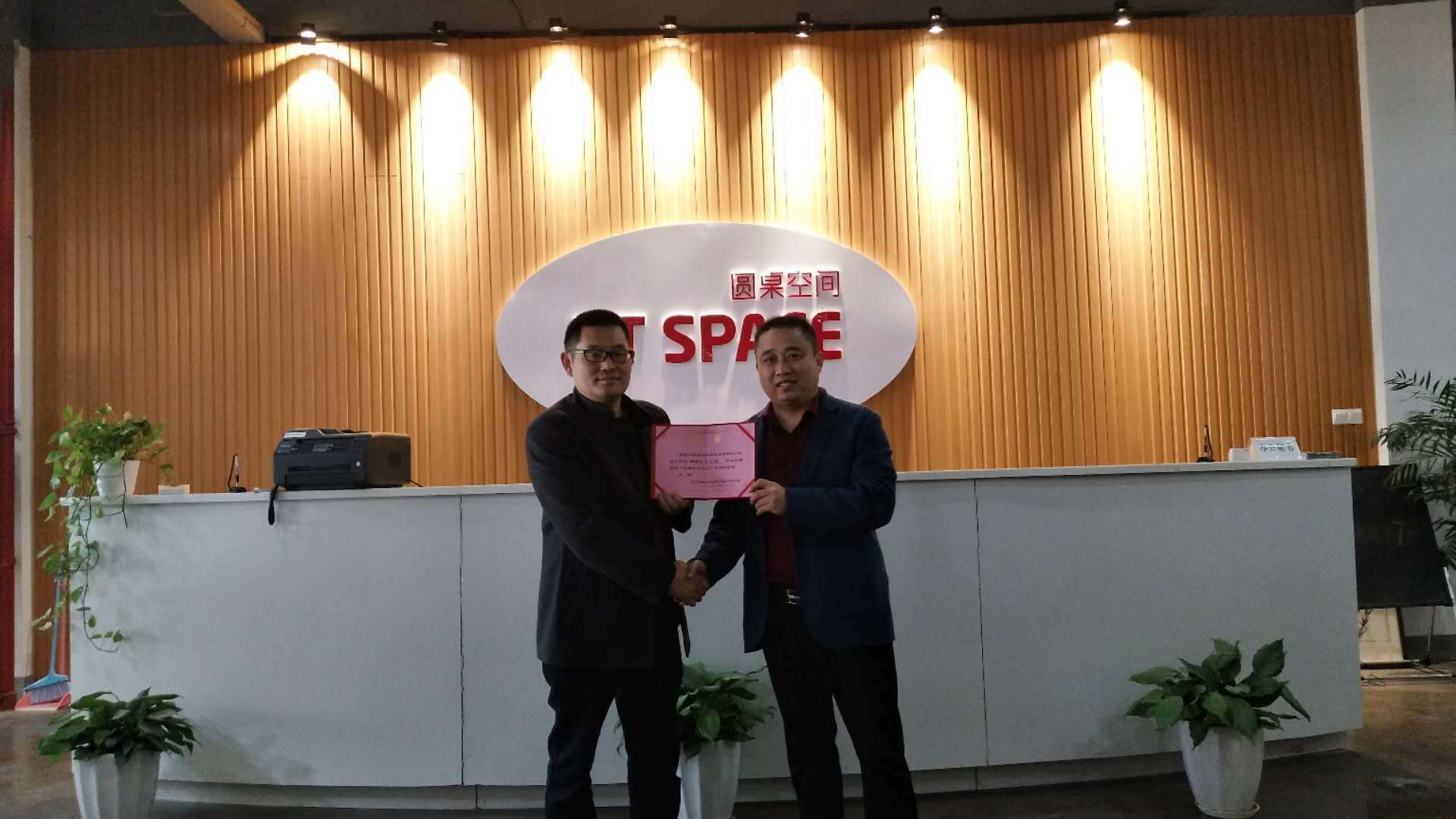 蘇州圓桌創業孵化管理有限公司負責人張忠強先生(左)為李俊鋒先生(右)頒發導師聘書