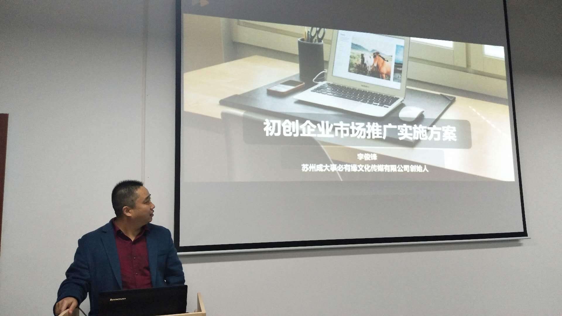 3月24日,知名文化傳媒人士、蘇州成大事必有緣文化傳媒有限公司、蘇州歲豐漁美餐飲投資管理有限公司、蘇州成大事必有緣裝飾工程有限公司、南通李俊鋒生態農業合作聯盟創始人李俊鋒先生獲聘蘇州圓桌眾創空間導師團終身導師,蘇州圓桌創業孵化管理有限公司負責人張忠強先生為李俊鋒頒發聘書,當天,李俊鋒先生還進行了《初創企業市場推廣實施方案》首場講座,受到熱烈歡迎。