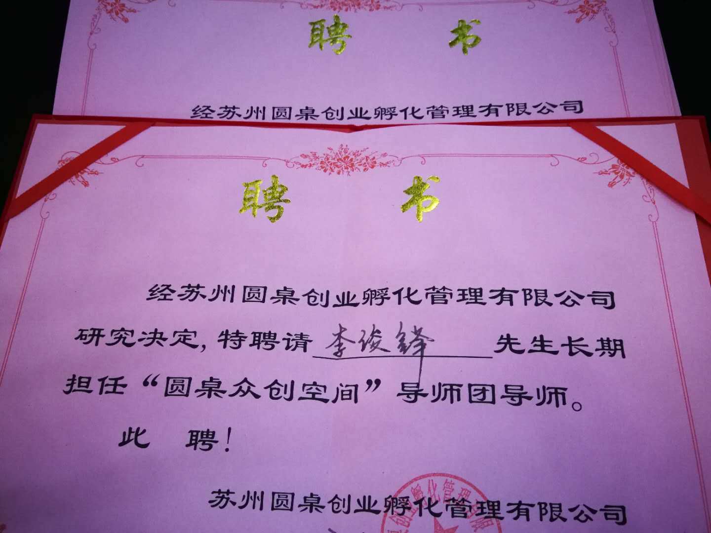 知名文化傳媒人士李俊鋒先生獲聘蘇州圓桌眾創空間導師團終身導師
